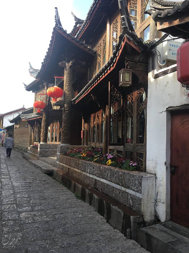 旅行是一件拼体力的事情,自由行果断选择了好好休息。古城里选择了宿国色天香客栈,这是一个走较为低端路线的客栈。被名字吸引后,怀着太多憧憬去了。评分也很高,评论数量很多,事实证明这些内容只能参考,客栈老板说叫我喝茶说了五遍,来来回回,因为不太符合期望,第二天一大早我们就离开了。全部木质结构,没见过的那种插片式样的球形锁,以及木块和木块之间还能透光,可能总归是时间久了些,经过长年累月雨水风霜,才是这番模样了。