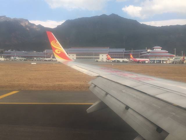 约莫五点多到达丽江机场。听多了丽江的美好,着实让我对这次旅行带来了太多美好的憧憬。丽江机场又比之前着陆的昆明机场小了太多。蓝红色的瓦檐是唯一的亮点。也确实,几步路很快就走出了机场。和南京、深圳,上海这些城市的机场是不一样的。开始对丽江有了新的认识。这其实是一个小小的旅游城市。五点多,太阳光依然强烈,以我原先的认识,这个时间应该是天快要黑了下来,于是第一天的行程是安排在机场附近酒店休息的,而没有选择直接前往大研古城。
