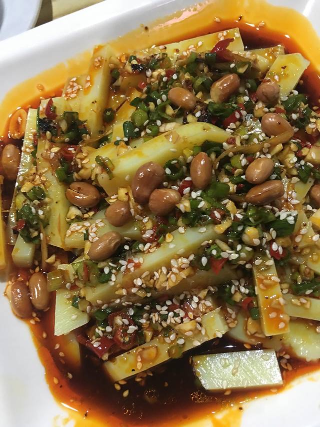 充分看到花生、辣椒、葱花、油,重口味,油咸辣,但是好爽。