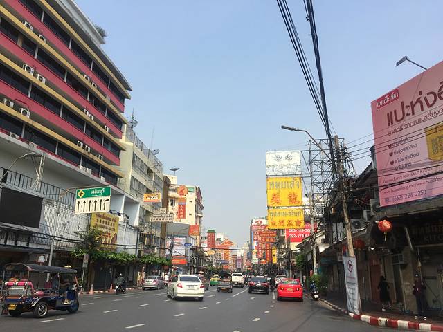 去大皇宫的途中路过唐人街,啥景点呢,其实啥也都没有,下车,温度非常高,领队和导游都讲泰国得天气只有热,很热,真TMD热三个级别,我们这个时候来呢,是很热的时候,南京这边还要至少一个线衣加一件冬季外套的季节,大巴上的空调开得非常凉爽呀,一下车我们真的受不了的感觉,大家都觉得很热。下车以后这头走到那头,仔细看一眼街边的小摊贩的时间都没有的,别提拍美美得照片呀,导游友情提醒好多东西都是义乌这边过去的,不让我们买呢,我们走在屋檐的阴凉下匆匆走过了我们的第一站,唐人街,记忆最深刻的是仿佛电视剧里面的上个世纪得中国,房子比较破,电线杆和电线非常得显眼。