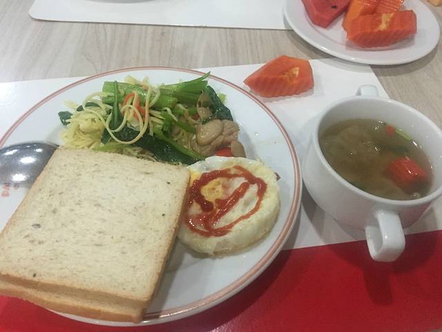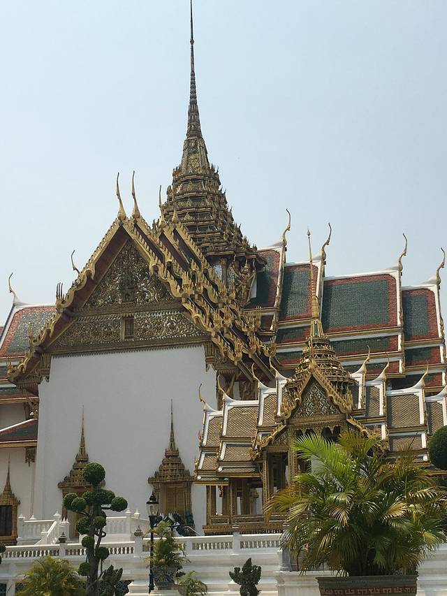 大家也都没有买东西,可能是下车 的时间比较仓促,也可能是比较热,还没完全适应的原因,上了车以后出发去大皇宫,大皇宫要求不准穿紧身裤,着装庄重,皇家寺庙,泰国信奉佛教,泰国最富丽堂皇的地方是佛堂,到了大佛寺,入口处有人检查着装,不合格的需要到门口去买一个纱笼,100泰铢,大概是20元人名币,说纱笼对方就可以听懂,他们不讨价还价按。进去后几个拍照片,是集体团合照,出来的时候你如果满意可以花100泰铢买下来。拍完照以后往前走集合由大皇宫的导游带我们给我们讲解。大皇宫和玉佛寺在一起,我可以讲我只拍了几张图片,看了一下外面进去大殿象征性的祈佛,就去集合离开出发下一站看人妖表演了。哈哈,我可能去了一个假的大皇宫和玉佛寺把。大皇宫是泰国黄金打造,玉佛寺是一年四季都会换上不同的黄金衣服,泰国导游的中文说的非常好,他们都是有专门去学校进修中文,泰国最多的游客是中国人。午饭是自助餐类型,米饭,饮料,水果等都是有的,也有很多的人说是吃不惯,他们的大米是泰国大米,个人感觉煮出来的米很硬,也没有什么水分的感觉,我不爱吃,第一天的有冬阴功汤,领队推荐我们过去尝尝,以酸辣口味,有西红柿和一只虾,蘑菇,还有当地的配料,我也不清楚是什么,进门处现做的,需要自己去领取,一个人只能领取一份,西瓜真的很受欢迎,上来就会直接没有 的那种,可能是真的比较热的原因,