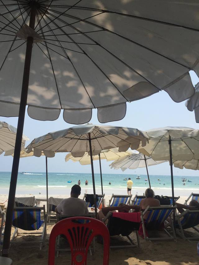 早晨5点40分的闹钟,5点50分起床洗漱,楼下吃早饭,我们住的楼下是泳池,我也没看见有人游泳,可能因为我们到的太迟了晚上10点多才到的住宿地点,然后早晨7点35分都集合出发去芭提雅了。早餐我觉得还可以,虽然品种较之前的住宿的地方少了一些。2个小时的车程去到沙美岛,坐上快艇以后10几分钟就来到了沙美岛,下船的时候是没有平台的,船停下,需要自己下到岸边的水里,自己走到岸边去,还是有一段距离的,海浪很大,所以下船后要尽量快速的远离船只,因为船会被海浪拍打的前后移动,我和我的闺蜜都被船只撞了一下,当心拖鞋不要被海浪冲走了。本人表示穿长裙去的,下船的时候衣服湿了。到了岸边集合,带来的东西放在一个固定的桌子上,领队帮忙看管,一会儿会有一个工作人员的小哥哥g过来介绍岛上的游乐项目,价格和一些注意事项,有潜伏,深潜,环岛,降落伞,水上摩托。好多人都体验了一下,我最后体验的是海上降落伞,一点点也不害怕,飞起来的感觉是真的很爽,飞到高处看的更远,心境很开阔,9点多到达的沙美岛,12点半集合吃饭,岛上的饭是8人一桌,几个菜,不是自助餐了。吃完饭乘坐快艇结束沙美岛的行程。