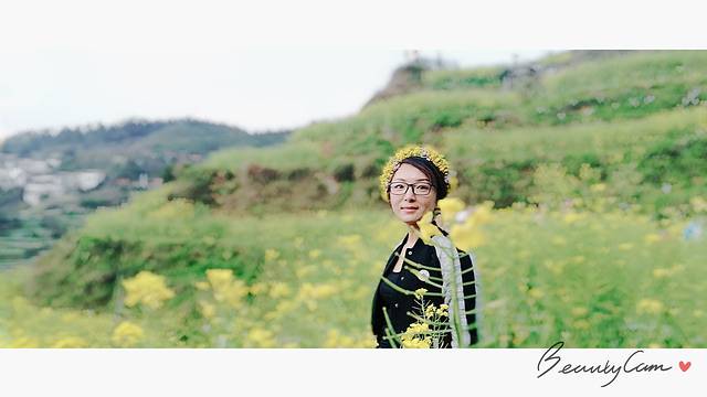 篁岭的梯台样的油菜花在我看来还没有全部开好,感觉还是有些黄绿绿的颜色,不够浓烈,因为进场排队大半个小时,所以真正下了缆车时差不多两点了,景区的巴车五点钟最后一班,扣除掉排队进出,基本只有两个来小时可以闲逛,走走拍拍不抓紧时间的话半天还是非常赶的;建议不要一进景区就各种拍,可以直接走到尽头,就是一个大吊桥那里,因为篁岭这个景区是只有一条路的,不管走多远,也要原路返回,所以可以直奔最前方,然后往回逛着拍,因为最里面,下了吊桥,油菜花才更密集;阳光晒的很,防晒还是要做好,油菜花的花环太漂亮为自拍增色不小,5元钱一个还是很划算的;景区里的黄瓜也5元一根,比一般的景区要便宜哦;篁岭的特色是“晒秋”,现在离秋天还远着呢,也只能略看个意思;