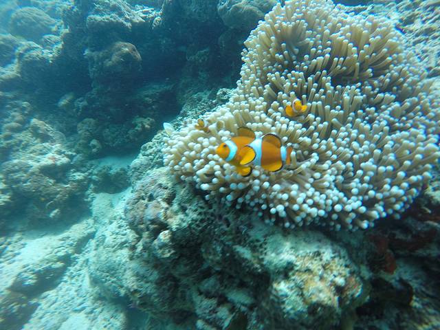 由于马达京是私人岛屿,无法上去,我们只能在边上潜水;一路我一直在喊海星,海龟在哪里,结果只看到了各种颜色的鱼和教练带上来水母;