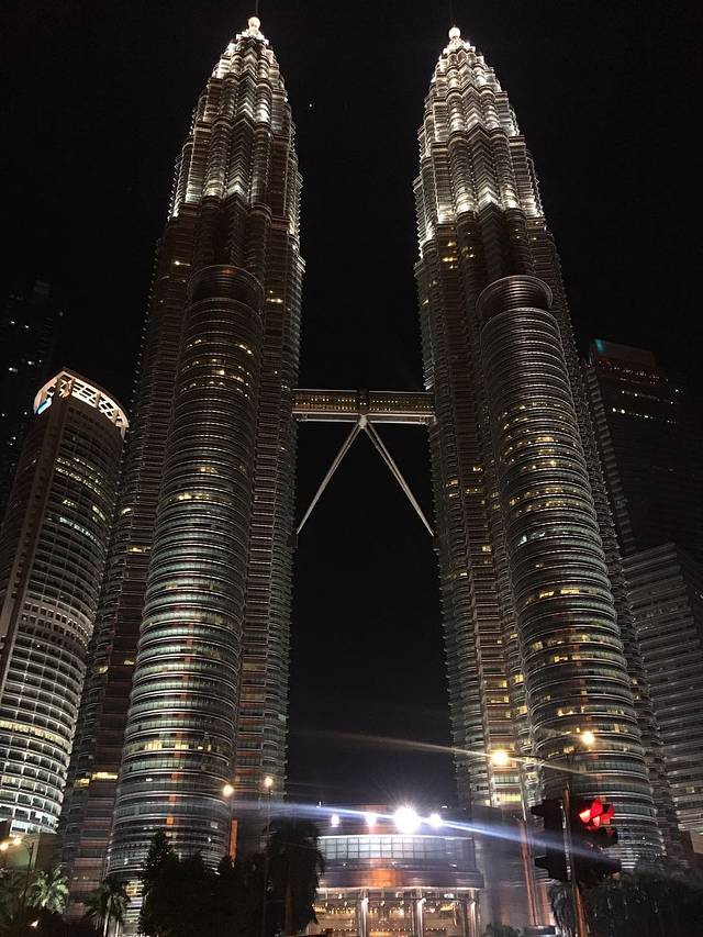 晚上来到旁边的双子塔,观看这边的夜景,吃这边的美食;