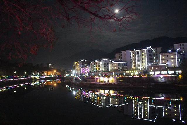 清流的夜晚,静静的走着,也能发现,这里的景色其实很不错。~