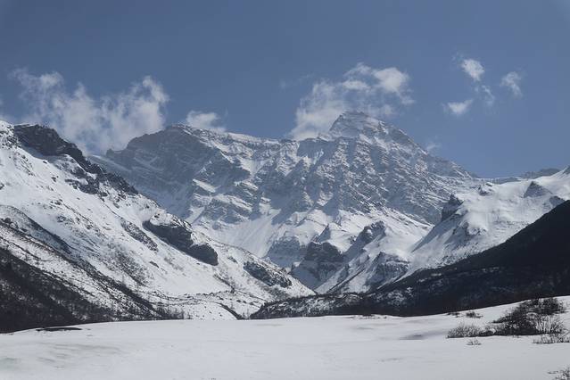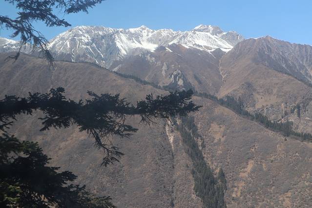 在第一个停留点往左边走,大概四十分钟能看到雪山,据说是青藏高原的东部。那个地方也是高原反应最强烈的地方,没走几步就感觉到气喘吁吁。