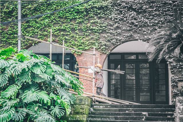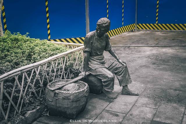之后,我们又回到刚刚经过的路口。刚才过来的时候,我就注意到了一个老人↓。他驼着背,静静坐在那里,拐杖放在腿上,手上戴着洁白的手套。我想拍一张他和老街,他却好像一直注意着我。我们吃完春卷回来时,老人仍保持着同样的姿势,零星的年轻游客从他身边走过,他的头会微微偏动,眼神却一直很空,不知道到底在看哪里。只有在他背后,我才敢拍下一张照片。
