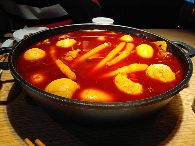 这是我们在重庆的第一顿真正的火锅,其实本来是个备选,但因为玩太晚之前找的关门了,就在酒店对面就近吃了。火锅味道中规中矩,但还算有一些小惊喜。觉得火锅味道不够惊喜的一大原因可能是,锅底本身不是很咸,而我又点了一堆毛肚、黄喉等嘎嘣脆不会入味的东西。油碟里也没有类似麻酱、蚝油的调味的佐料,只能吃到食物的原味,而黄喉的原味就是没有味道。。。所以不知道是这家火锅店的原因,还是我自己口太重的原因,求重庆土著来解答。