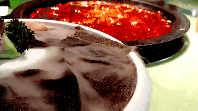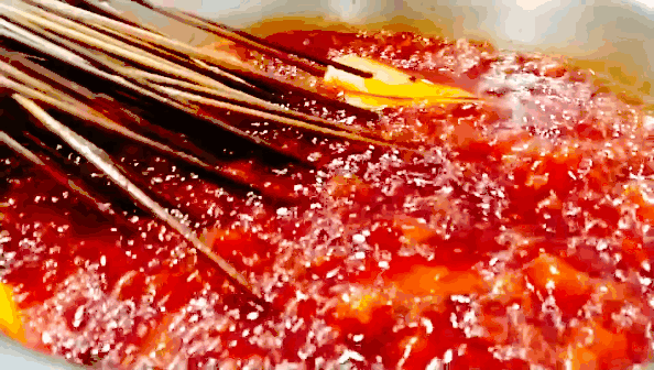 吃完,一碗清澈透亮的油料妥妥地变成深红色的红汤。