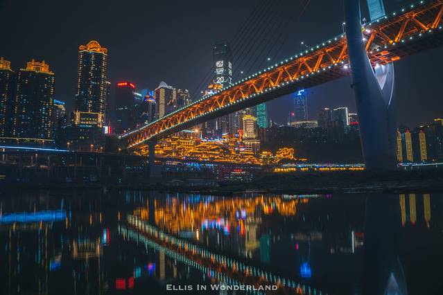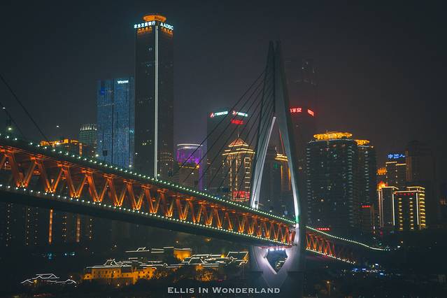 重庆被叫小香港,我想一半是因为市井,一半是因为夜景。有的人热爱夜晚的放纵,有的人畏惧夜晚的黑暗。重庆的夜色,刚好给每个人都留了一个位置。WFC高调的表白墙、洪崖洞璀璨之中的闹哄哄、江边无人的长椅、街边苍蝇馆子里微弱灯光下一锅又一锅翻滚的红汤,这些都是重庆的夜能够给你的温柔。我从来不是城市霓虹的拥趸,在重庆拍夜景,为的是一份隔岸观火的代出感。渝中半岛上耸立着重庆最密集的水泥森林,所以隔岸观火的岸,一边可以选在嘉陵江对岸的大剧院站附近,一边可以选在长江对岸的南滨路上。