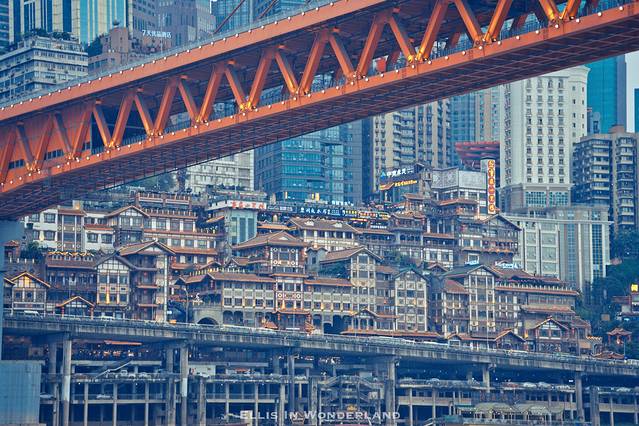重庆身上的标签太多。“山城”,整个城市建在山上。“江城”,整个城市建在江边(武汉稍安勿躁,你也是)。这样的地理条件下,又出现了“雾都”,整个城市罩在雾里(伦敦稍安勿躁,你也是)。又因为不服输的人儿,出现了“8D魔幻城市”,整个城市建得像个多维立体迷宫,什么停在8楼的2路汽车啦(乌鲁木齐稍安勿躁,你也有)、电梯爬了十多层出门是马路啦、轻轨除了天哪都能上啦,处处充满惊喜和意外。所以重庆的旅行没所谓“浪费时间在路上”。买一张票,等一趟车,去一个你熟悉或者陌生的站点,在路上,看山色空蒙云雾暧昧,在站台,拍列车呼啸行人匆匆。