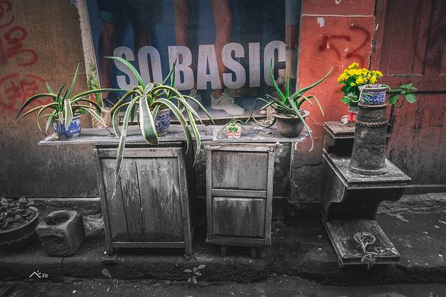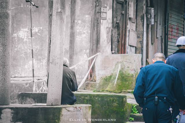 他坐在这里,是他住了很久的那条街吗?他应该知道,外面的世界——很近、就在一个街区之外——已经完全不一样了吧。他在守着老街、还是等着什么?还是说,是街和人相互陪伴的关系,相互陪伴着,慢慢凋零和消逝。修这张图的时候,我很想把旁边的监工修成灰的,可是很难。我脑海里看到的就是一条褪色的街、和一个渐渐远去的人。这真是这次最令人伤感的一张照片。