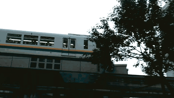 这列穿楼而过的轻轨,常常为重庆代言。下车后,从B口出,楼后有些建在山腰上的民居,是蹲守的好地方。或者像我一样懒的,只需过条马路,也能守到轻轨“登堂入室”的荒诞一幕。不必琢磨先有楼还是先有车,你只要知道,居民在高处过得好好的,不紧邻着走车的楼层住,而车站也运行得好好的,不会因为有居民而困扰,就行了。这是重庆式的和谐共存。
