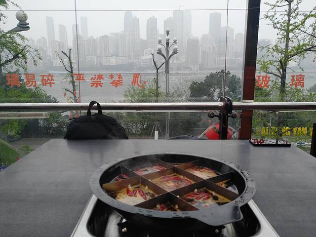这是我们在重庆的最后一顿火锅,仍然没有惊喜也没有惊吓。但它的特色,大家应该也能看出来了,无敌江景房啊,180°嘉陵river view,买不了吃亏买不了上当……好了没词儿了。不是它不好吃,是前面该推荐的都推荐了,这顿没有尝试新的东西。唯一试的一个黑豆腐,感觉……就是豆腐。