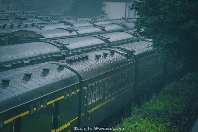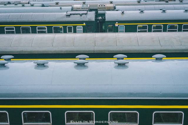 我们没有进火车站,而是来到火车站南面的一座天桥。在这里,能看到大量的绿皮车停靠在这里,说不定某一列,就常常经过你在的城市。