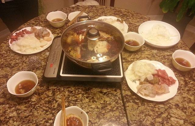 后来伯父伯母搬去美国定居,我去美国读书时在他们家过过感恩节和圣诞节。有次,不能吃辣的伯父出差,剩我和伯母以及堂弟在家。得到我可以吃辣的回答后,伯母开心地带我看食品柜里巨大的一袋辣椒,眼睛里闪烁着快乐而贪婪的光:今天我们吃火锅!伯母开心地熬汤备料,整顿饭全是一个人操办的。那会儿我还是一个小清新,接受不了蒜配油这么重口味的东西,伯母给我准备蒜泥和油碟的时候我理所当然地拒绝。伯母说,要吃的,不吃第二天上厕所不舒服。我秒懂油碟的功能,勉强接受了,并从此打开了新世界的大门。