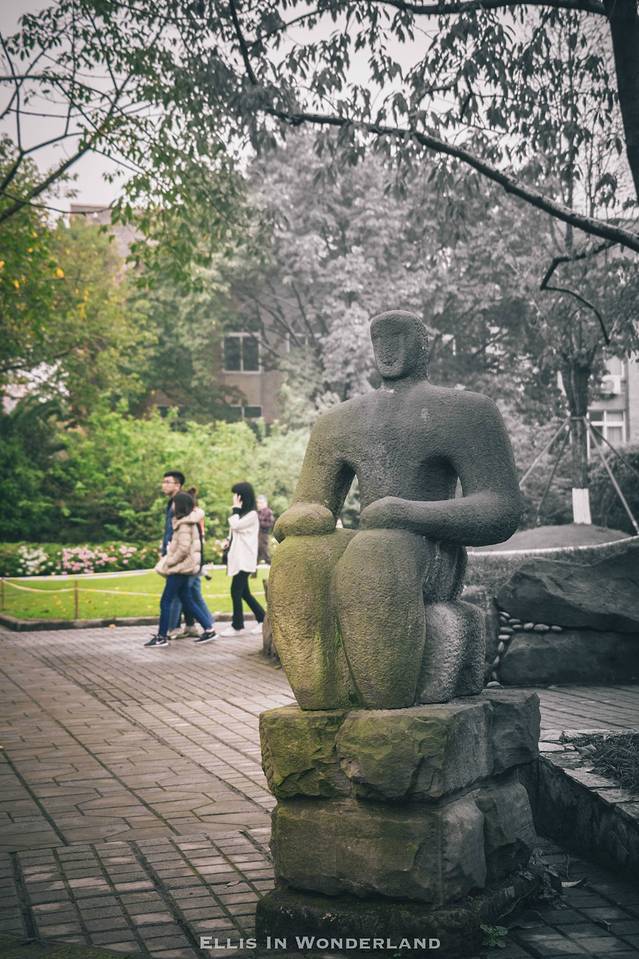 老校区虽小,却很有特色。跟普通的校园雕塑正经八百的好好学习天天向上不一样,这里有很多特别的雕塑,每个都很有张力,饱含情绪。