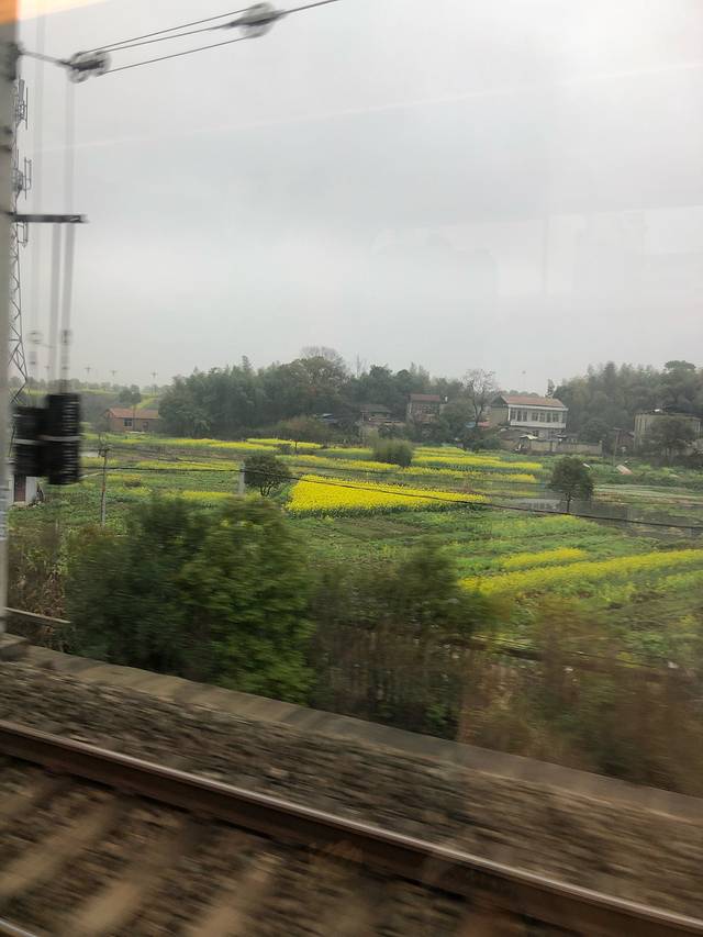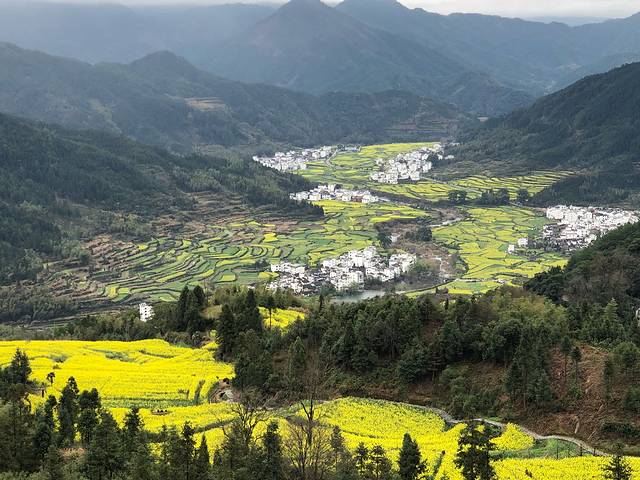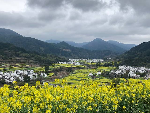 接近目的地,下起零星的小雨,但是看到路边的油菜花,心情也不错,对婺源满怀期待。