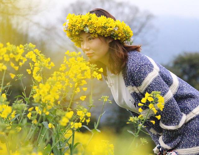 穿过廊桥能看到一大片油菜花田,只是只能远观禁止入内。