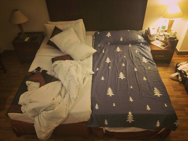 瓦拉纳西住宿图片就不做展示了(用新德里的),真的很艰苦,很艰苦。大家就脑补一下吧。也开启了我和少辉大床房之旅的第一站。后面我和少辉将住了更多的大床房,大家知道哪一面是钟导的吗?