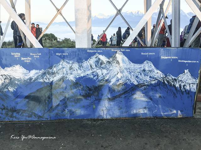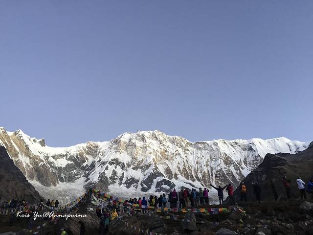 穿过住宿区,雪山脚下的观景台前已经人头蹿头,看安娜普尔娜在面前一字排开,壮观难以言喻!
