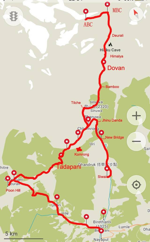 ABC+poon hill的山路都比较好走,如果不是重装,低帮登山鞋足以。另外山里很潮湿,一晚上衣服都不会干,如果打算每天洗衣服的话,可以白天挂在包上晒一下