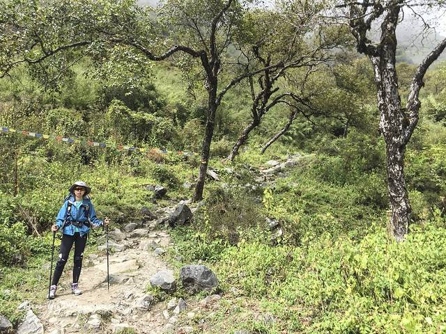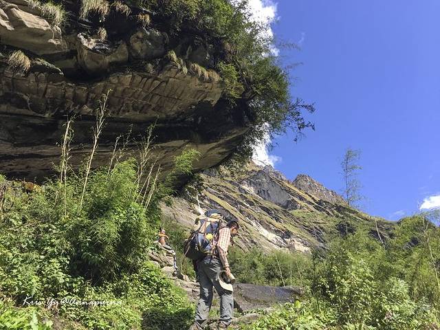 走在开阔的河谷里,去往MBC的路还算比较平坦,但是海拔上升到3000之后还是会有点小喘,所以我们开始放慢脚步,走走停停看看风景。如果天气晴朗,一路都能看到山坳里的雪山吧虽然当天下午云层很厚,不见雪山真容,但是一路风景还是非常壮丽