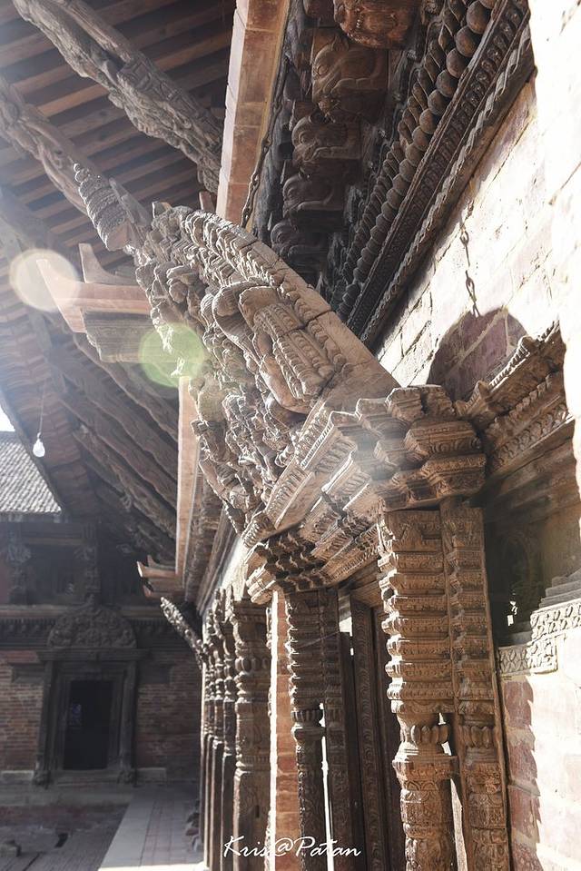 Patan的寺庙里都有精美的雕花窗栏