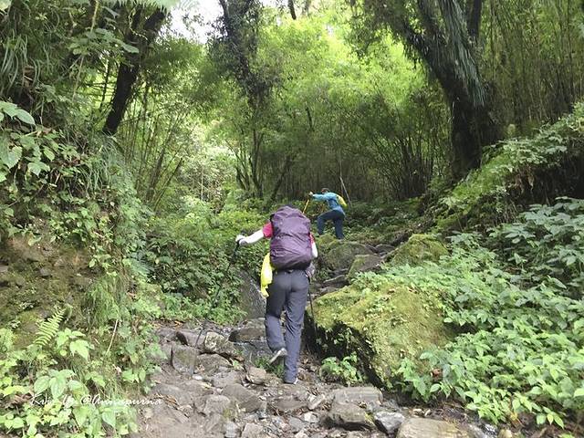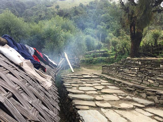 一早从乔木龙开是下撤,这一路虽然时间很久,但是路还是好走。大多是修缮的很好的台阶路和乡间小路。但也有部分路段有乱石滑坡等。