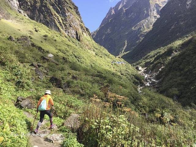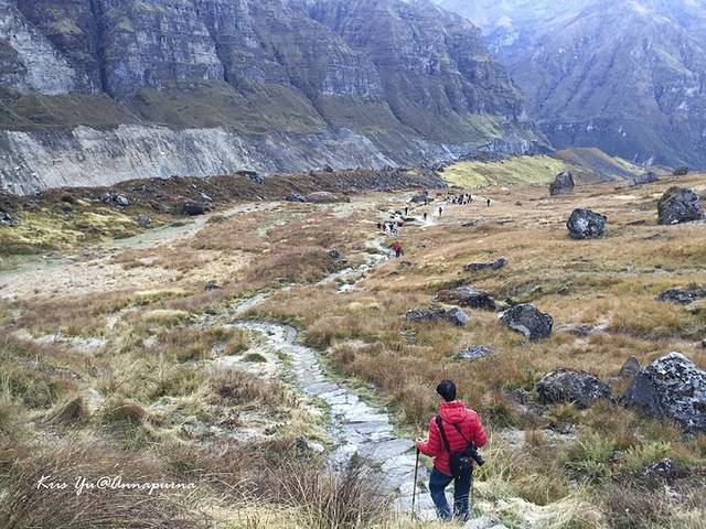 之前在夜色中从MBC走到ABC,错过了一路的好风景,回程 下撤终于有机会一览雪山环绕的山谷景色, 虽然雪线有点高,但是依然壮美!