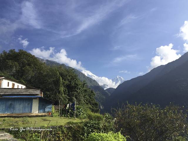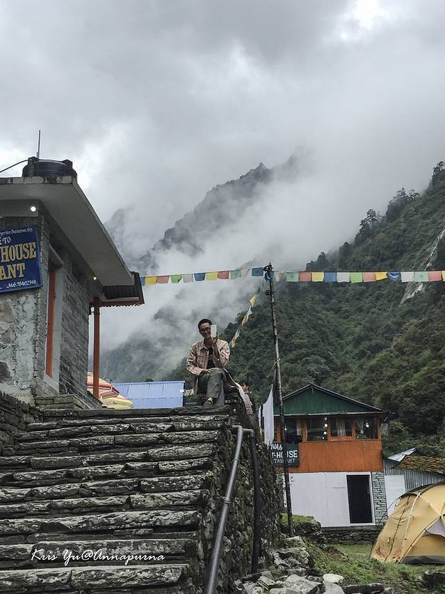 Chhomrong:(Day3)乔木龙不需要说了,非常有名的大站,这里开始就上ABC了。我们的客栈在下坡的主干道的第一个分叉点上(右手边就出村继续下坡到桥了),面朝对面山谷,视野非常好,客栈门口还有大片草坪。
