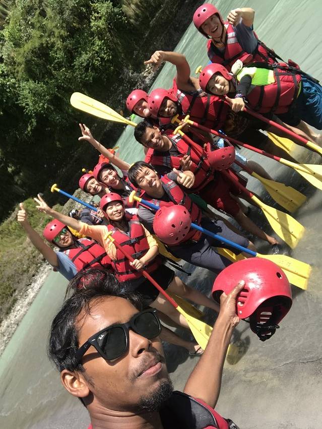 一船最多6个人吧,教练会坐在船尾指挥。水流很湍急,全程都有点小刺激中途还有一段因为太过惊险,大家都被要求下船从岸上步行绕过去 。一个小时很快就过去了,真是意犹未尽。