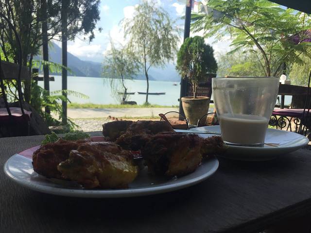 回到镇上也将近中午,先去费瓦湖边填饱肚子,随便找一家味道还行风景也不错。可惜没有鱼尾峰的费瓦湖和西湖无异