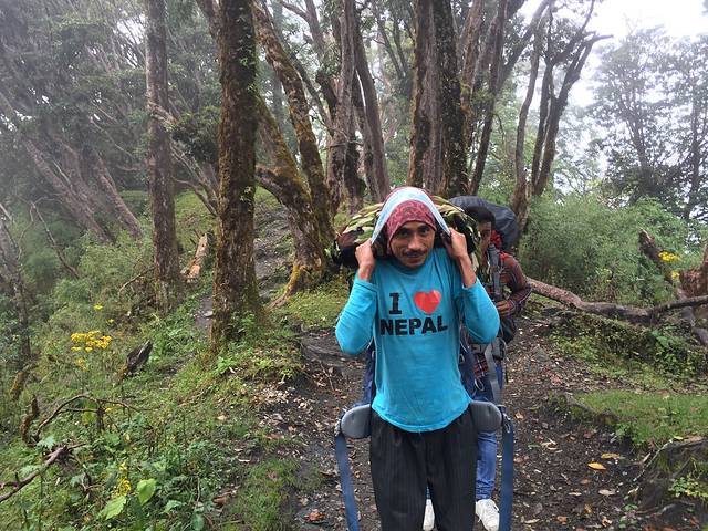 讲真的,我们背夫还是非常给力,尤其是2个重装的小伙伴,因为始终走在最后,一路蒙背夫照顾。同时还帮忙预定住宿,帮忙规划怎么走。所以我们对他们也算慷慨,隔三差五还会请他们喝水喝可乐,有一天我们赶路来不及坐下吃饭,还额外给了他们不少钱,让他们自己买点干粮当路餐。而且我们都打算最后给他们小费作为感谢。(最后给的小费比一天费用都多。。。)