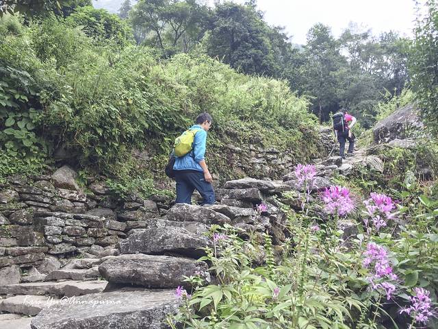 本来打算全程靠走的我们,因为精疲力尽,最后决定搭车下撤。 背夫告诉我们,从Chhomrong下撤,最近的搭车点是Siwai, 他带我们走近路大概要5 小时。以为搭车就不要再走死走活的我真的是太天真了。。。