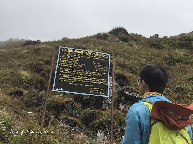 爬完最后一个坡,下午1点半终于看到MBC的营地。此刻的天气已经雾茫茫的一片,感觉当天的鱼尾峰落日没有希望了。。。