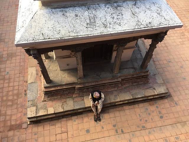 这里提醒一下,加德满都打车还是蛮坑的,我们上车前跟司机说的是Patan的杜巴广场, 他说600,比其他人开价都略低,我们就跟他走了。结果看他开的方向不对我就提醒他我们是去Patan不是加都。他改口要价800,一番拉锯之后700成交。结果他把我们带到离开杜巴广场很远的地方就让我们下车。