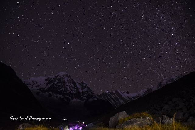 没有睡醒+负重相机+海拔渐高,没走几步我就喘的不行,通往ABC的道路人挨着人,一停下来休息就被好多人赶超。。。走不动只能量力而行, 索性停下来拍拍雪山星空休息一下