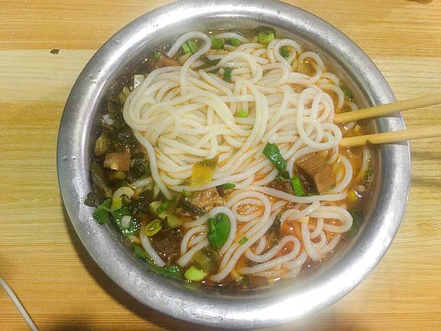 贵阳牛肉粉,传说是贵阳的特色小吃,也是爸妈这么多天来评价最高的食物,好吃又不贵。发现贵阳人很豪气,当我问老板娘要汤勺的喝汤的时候,老板娘说没有汤勺,都是端起盆子大口喝汤的。