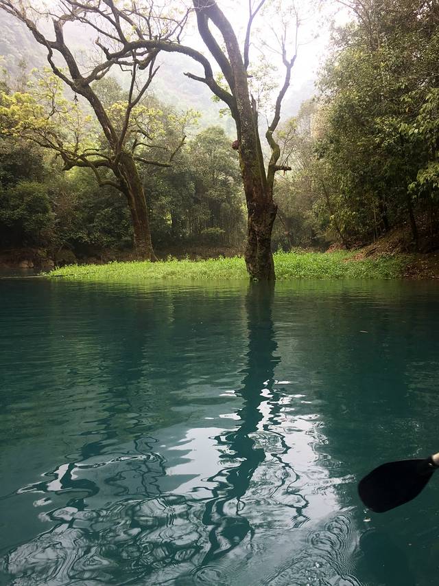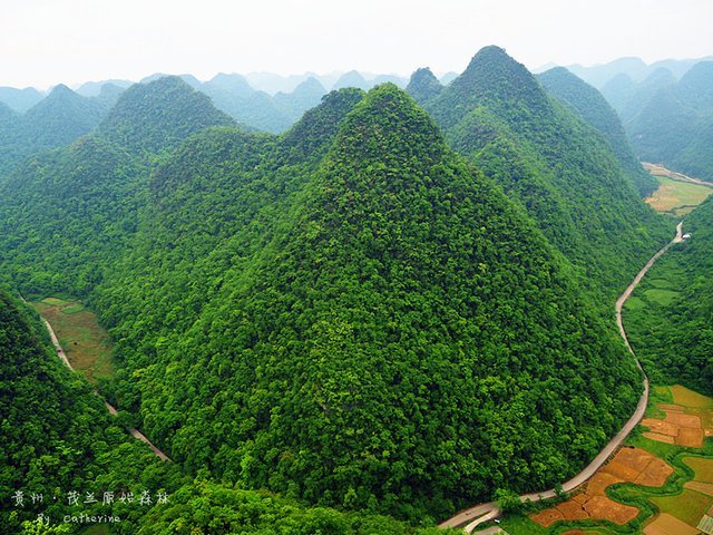 第二天上午,我们乘坐飞机去荔波,在飞机上就看到到处都是山,真不愧是山城。地导来接我们去茂兰,茂兰门票是50元,地导说,只要一直呆在里面,玩一个月都没关系。地导家在茂兰风景区里面,出家门就有景点可以玩。当天下午,我们去了金狮洞和青龙潭。