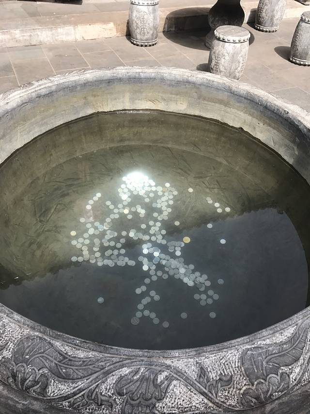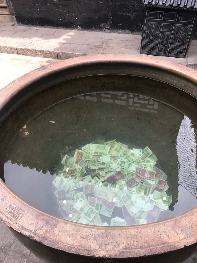 凡是进一座宅子,门口都会有口大缸,缸内有水(起到消防的作用,水主财),有个元宝形状的石头,几乎每个缸里 每个地下金库里都有游客仍票票(>人<;)好想捡啊啊啊。