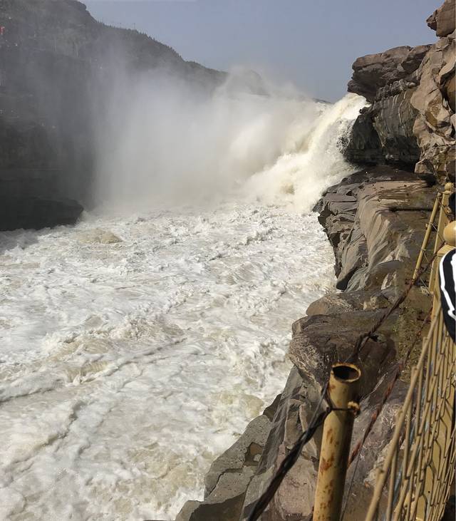下午一点半到壶口瀑布,导游说上午十点左右可以看到彩虹🌈,错过啦。大巴到达壶口瀑布停车场还需要坐景区内的小交通到达景区,往返费用为20元,这个小交通是必须乘坐的。门票为100大洋,景区内还有龙洞,也是一个观赏点,可以以仰视的角度看瀑布,需另买票,费用为20元。