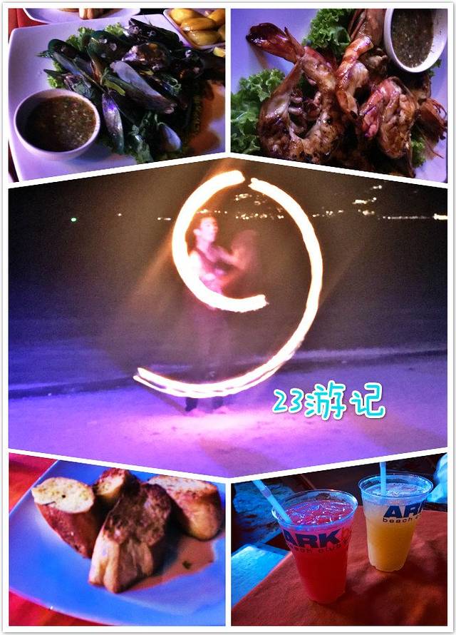 我们点了好多吃的,无奈光线昏暗拍不出来就贴几张吧。中间是烟火表演,开始时间是晚上9点左右,可以来看看。