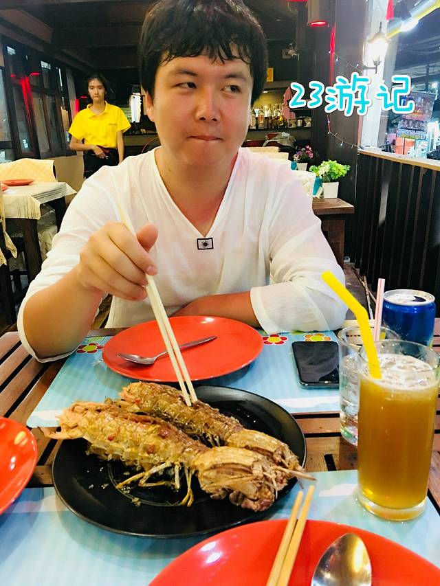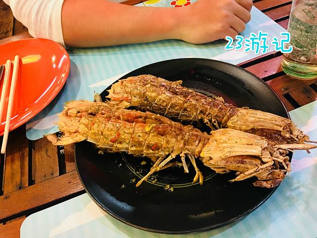 第二天的中午我们依然在他家吃的,大龙虾的肉非常紧致呦~ 好吃好吃~