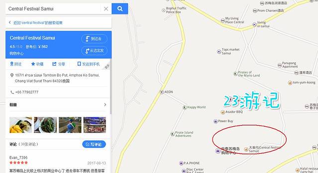 这个位置的名字翻译的真是。。。就是BigC标志很明显的。是一个大超市,然鹅,跟我想象的还是有出入的,不想咱们这边的沃尔玛啊,欧尚啊那些大超市。虽然占地面积不小,但是没有那么高端。除了超市,里面还有肯德基,星巴克和美食广场。我们去那里是听说这是苏梅最大的超市,溜达溜达买了点儿吃的。