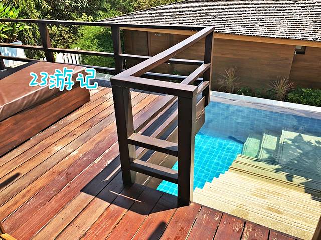 从房间推开门外面是这样的,我们的独立泳池,这个房子都在这个泳池上面~