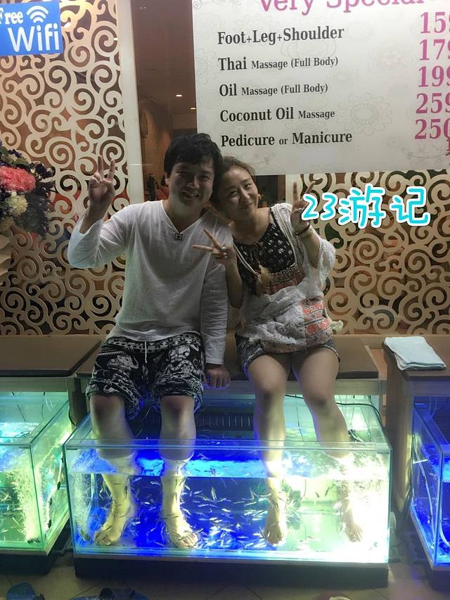 小鱼鱼spa 我们也是随便找了一家,在路边露天的,还是建议大家找一个在房间里的凉快~小鱼很可爱
