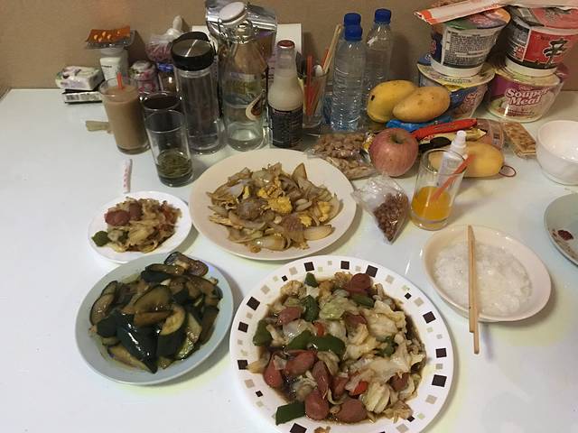 每天,最幸福的一刻就是吃中国菜啊,虽然也没什么大鱼大肉,不过吃着舒服。最可惜的,就是海鲜市场被火烧了,不然还能买一些回来自己做呢。