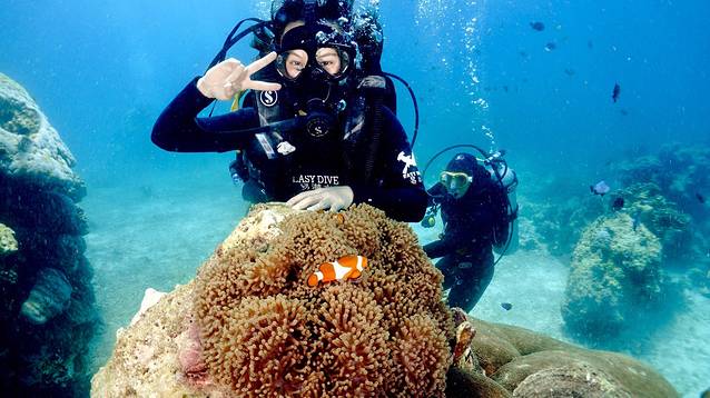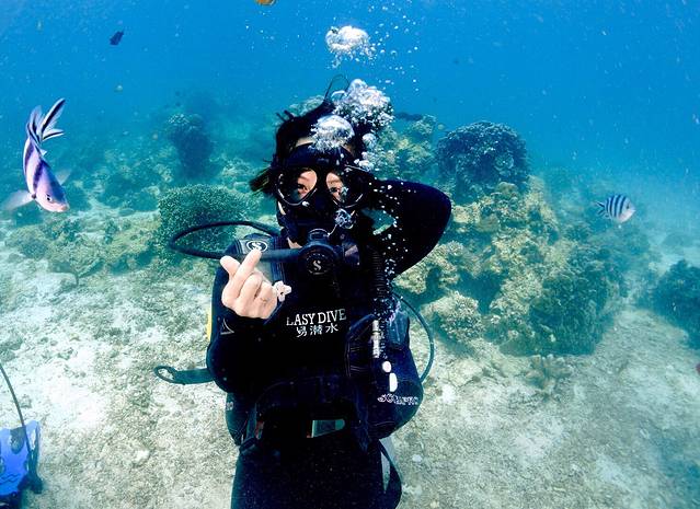 *深潜的时候,不要紧张,教练都很nice的。教耳压平衡的时候,注意学。下海时候,每隔一米其实就可以做耳压平衡,这样会比较轻松